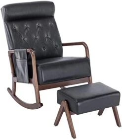 - 4.Sturdy & Durable: The solid wood base provides a stable foundation while the sleek wood armrests add a touch of natural elegance. this lounge Chair is built to last. Whether you’re looking to rock your little one to sleep or simply relax and unwind, this Rocking Armchair is designed to provide both comfort and safety.