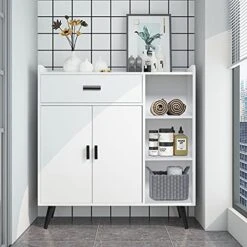 - Multi-purpose cabinet: This floor cabinet is not just can be used as a bathroom cabinet to store towels and toiletries, but also serve as a storage cabinet to store & display life-essentials and collection in living room, a sideboard to be your ideal coffee bar, or a printer shelf in home office, the kitchen storage cabinet, or the entryway accent cabinet, it’s up to you!