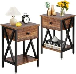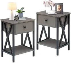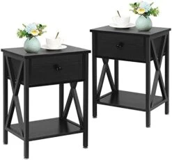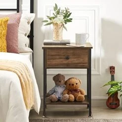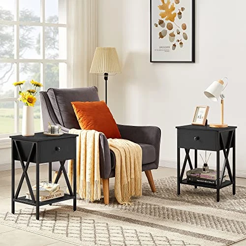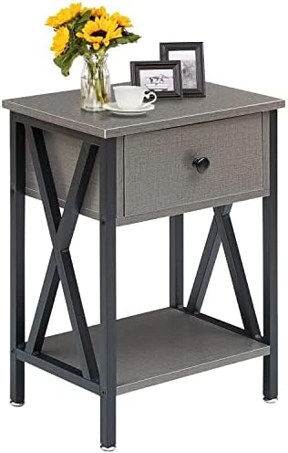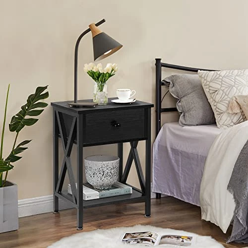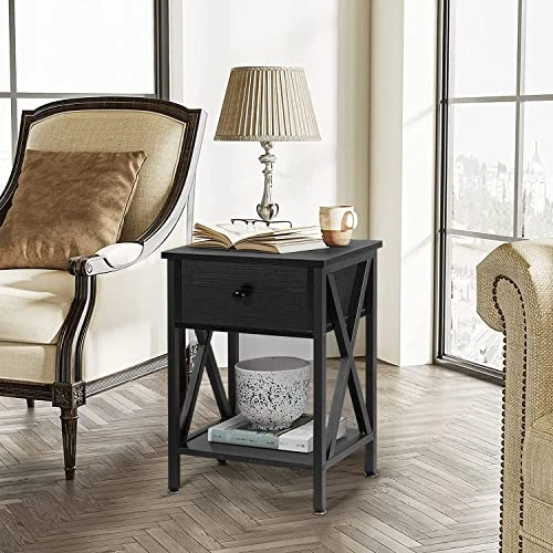 - Designed with 1 drawer and 2 open shelves, the bedside table is sufficient for you to store your family photos, lamp, coffee or tea, books, alarm clock, TV remote etc.