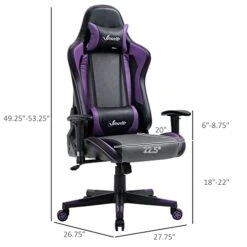 - GAMING CHAIR INFORMATION: Overall Dimension: 27.75″W x 26.75″D x 49.25-53.25″H, Seat Dimension: 22.5″W x 20″D x 18″-22″H, Weight Capacity: 264lbs