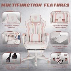 - 🎮Ergonomic Design of Computer Chair: Thick padded backrest and wide seat take each customer to the next level of comfort. Removable lumbar cushion, neck pillow and footrest keeping you comfort when you gaming, working and sleeping. Massage function of lumbar cushion relax tired body when you long hours setting.