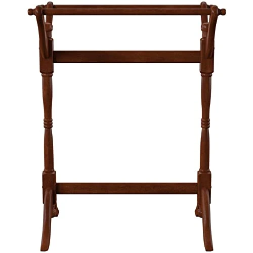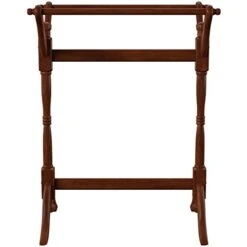 This magnificent 18th century reproduction blanket rack is a charming addition to any home. It keeps quilts, bedspreads, and blankets neatly placed in the bedroom, or holds towels in the bathroom. The solid wood construction comes with a lustrous heirloom cherry finish to complement any decor. At 32 inches tall, the rack can hold up to 20 pounds on each crossbar. Minor assembly is required.