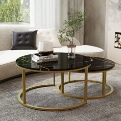 - Imitation Marble Surface—The high glossy faux marble PVC veneer finish has the look of elegant and luxury, perfectly balance the classic style with modern design for our circular coffee table. Also, this round table is scratch-resistant, waterproof and easy to clean. No paint was needed, green non-toxic and Eco-friendly, care for family’s health.