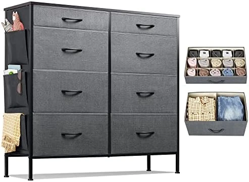 - Roomy Storage Space: The dresser for bedroom has 8 deep drawers that are spacious and provide endless organizational possibilities. Wood top is great for placing frequently used items, keeping them in your reach.
