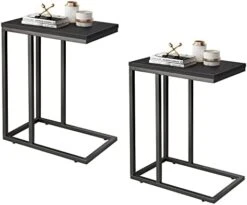 - 【C Shape Table】The C shape side table features steel legs so it can be moved easily when you are eating or working on the sofa or beside the bed. Each C-shaped table has a large table top measuring 18.9″D x 11.8″W and a reasonable 24.4″ height, which is perfect for holding a laptop, snacks, coffee, or as a dining table or occasional dining table