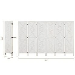 - 【Bidirectional Hinges & Floor Protection】Three two-way hinges make it easy and simple to fold this 6-panel screen to whatever direction suits you best,and each foot has feet to protect your floor well.