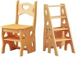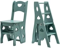 - [MULTIFUNCTIONAL]This step ladder can not only be used as a wood foldable step ladder or a wood chair with back,but also as a small display stand for plant and book.Suitable for balcony,terrace,library,Bedroom,kitchen,living room,library,bathroom,garden,outdoor etc.