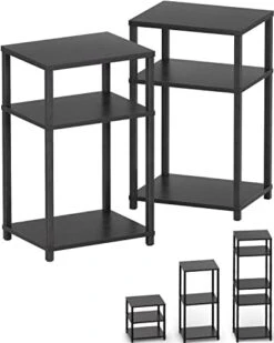 - 【3 HEIGHTS FOR USE】Easy no hassle no tools 5-minutes assembly, this set of 2 nightstands are so simple that even a kid can accomplish. The sticks are evenly connected to the boards by rotation, different lengths of sticks are paired with the boards to get different heights of display shelves.