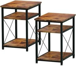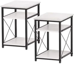 - SIDE TABLES ENRICHES SMALL SPACES – The set of 2 side table (15.8″W*15.8″D*22″H) fits perfectly in a small space of your bedroom or living room due to its versatile and simple style. 1 spacious top board(15.8″W*15.8″D) and 2-tiers spacious storage shelves of each bed side tables have given sufficient storage room for storing and displaying, which is space saving and everything can be reached by hand easily.