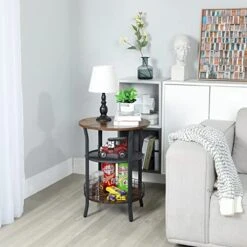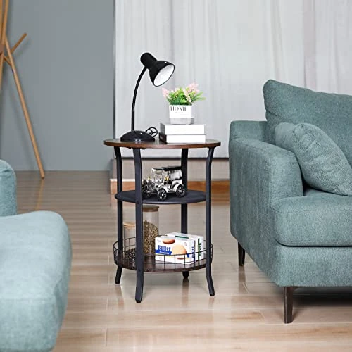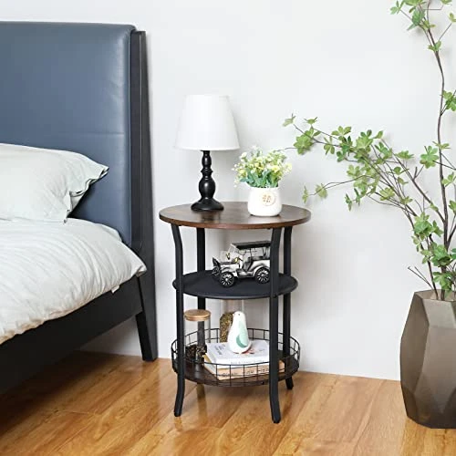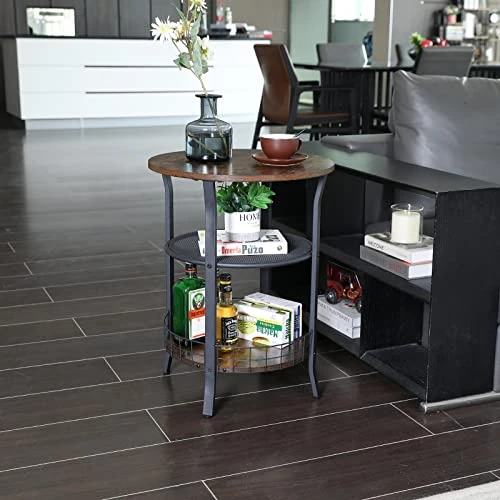 - 【Powerful Storage Function】Our end table can meet all of your different needs.The open and smooth shelf at the top provides storage and display space for your coffee, photo frames, books etc. The mesh design in the middle can hold decorations or books, and the partition at the bottom is specially designed with a fence, which has a strong storage function.This portable round end table can be easily moved to any location in the home, such as garden, terrace, balcony,living room, bedroom, office