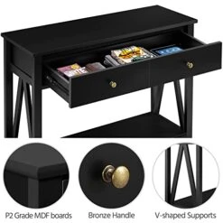 - Spacious: console table features one spacious drawer and a bottom storage shelf, used for storing and organizing your items. The drawer can be used for storing small items such as keys, remote controls, umbrellas, bottom shelf for storing your book, magazines, laptop, water bottles and so on, making your stuff neat and tidy