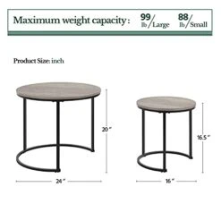 - Doubled surface area: Compared with other coffee tables, this nesting table set is designed with two spacious round tabletops, which maximizes the storage space for you. The wood-like grain on the top adds a natural accent and shows your unique taste.
