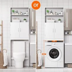 - 【Multi-functional】: With an adjustable support bar in the bottom, adjustable in three different heights, this toilet cabinet can fit over most standard toilets or washing machines, and extend vertically needed storage space. It’s can be both an improvement in a tiny bathroom, laundry, and is an important part of your family.