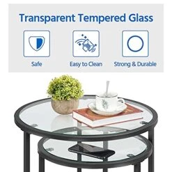 - 【Safe and Comfortable】Each tempered glass end table has crystal clear glass securely fixed by 3 suction cups attached to the frame. Good to touch with no sharp protruding edges/points.