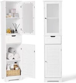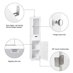 - 【Adjustable Shelves】– The bathroom storage cabinet with drawer and doors is equipped with adjustable partitions, which can be adjusted according to the height of different items. Moreover, the storage cabinet adopts frosted glass door, which can keep your personal stuff not be seen. And the shutter door allows maximum air circulation in the floor cabinet for better keeping your items.