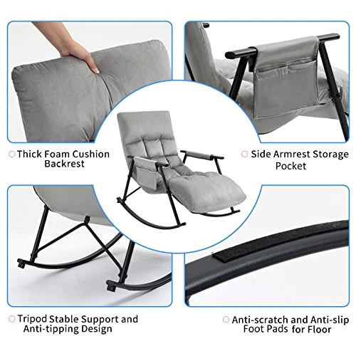 - 📌【Widely Usage】With its special design, it is perfect for different places. And it won’t take up much space as both the back and the legs can be folded. You can put this velvet accent rocking chair in the living room, bedroom,office, balcony and study. It also can be used as a glider chair for nursery.It means you can enjoy the comfort and fun of the lounge recliner rocking chair indoor at any time.